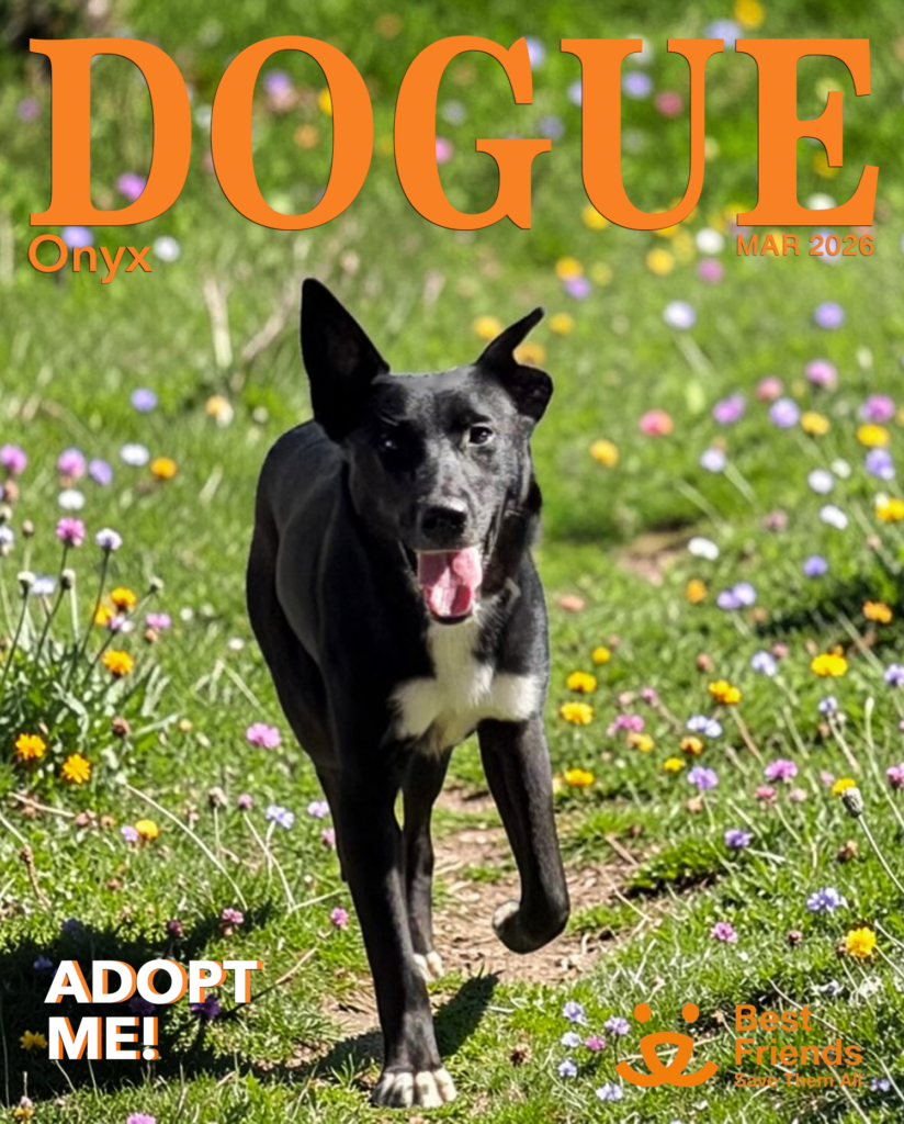 Every Friday, DOGUE Adoption Friday shines a spotlight on a special dog looking for a loving home. This week, we’re excited to introduce Onyx – a sweet and curious pup, with a playful spirit and affectionate heart.